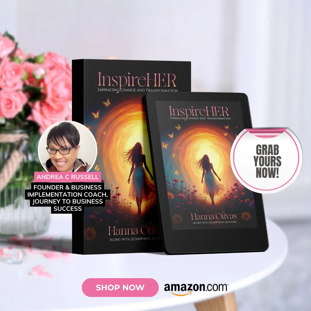 InspireHer : Embracing Change and Transformation. A book showcasing the journey of women who have navigated significant transformations in their lives. A celebration of resilience, courage and embracing change.
